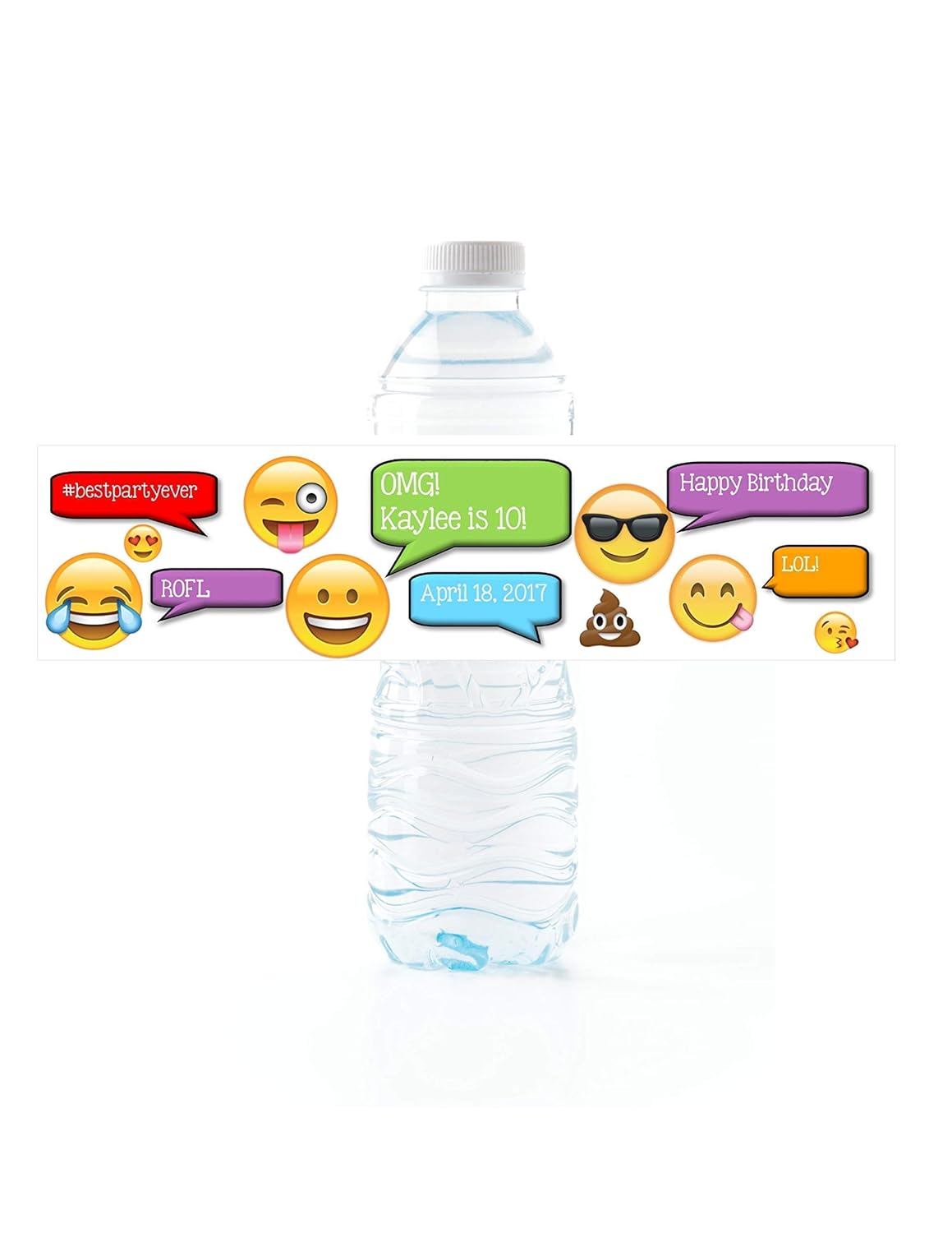 Printable Pastel Emoji Water Bottle Labels, Emoji Birthday Party ... ★ High quality Pastel Emoji themed water bottle wraps - 4 designs - measures 2" x 8.5" - 4 wraps per page. PDF Format - 300 DPI - compressed into 1 .zip file. Wrappers include the following 2 hashtags: 1. #thirsty 2. #drinkup Wrappers will fit most sized plastic disposable water bottles.